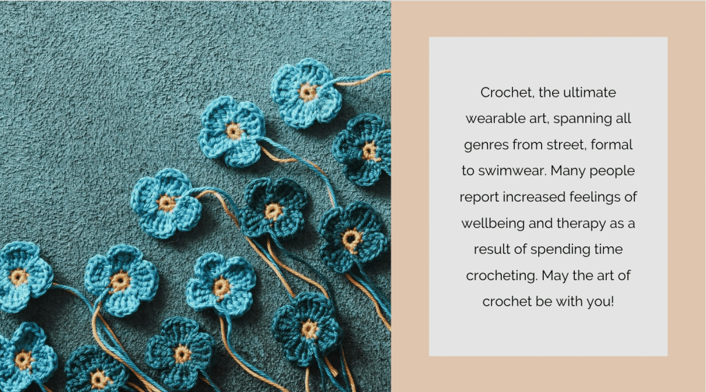 “Crocheting acts as a mental and physical therapy and there are many beautiful things that are created in the process”.